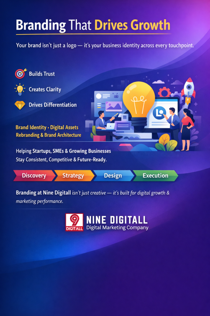 At NineDigitall, we provide professional branding services in Bangalore for startups, SMEs, and growing businesses that want clarity, consistency, and competitive advantage.